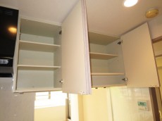 上部には耐震ラッチ付の吊戸棚が設置されておりますので、お気に入りの食器を