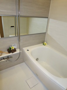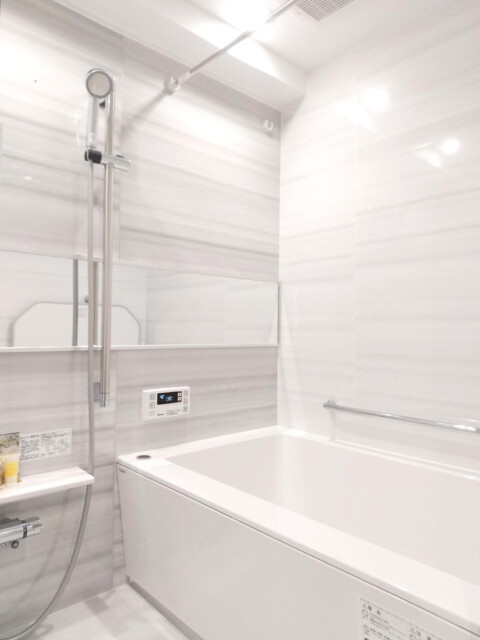 浴室は白を基調にモノトーンでコーディネイトされた明るい雰囲気。キャンドルが似合うようなダークトーンの浴室もいいですが、やっぱりお風呂は白ですよね。追い焚き機能付きの給湯器はお風呂の準備もボタンひとつ。そのまま保温もしてくれるのでいつでも温かいお風呂に入れますよ。雨の日に嬉しい浴室換気乾燥機付き!