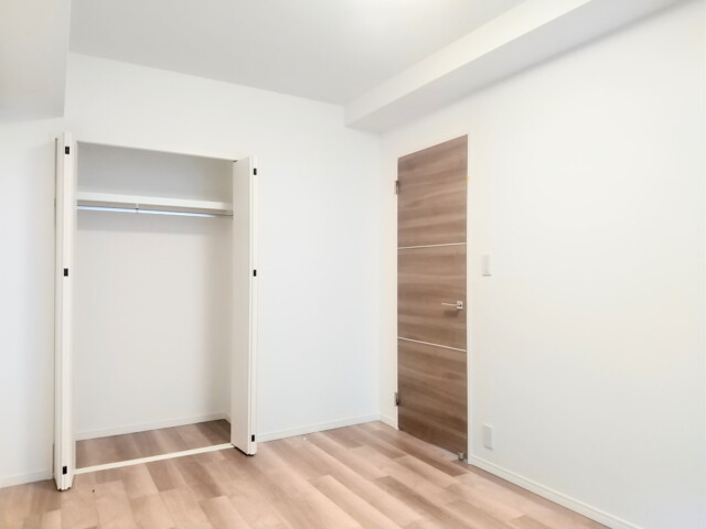 南東向きバルコニーに面したお部屋です。クローゼットが付いているので収納家具の必要もナシ!デスクやドレッサーなどベッド以外の家具を置いたり、ベッドを少し大きめのサイズにするのもいいですね。