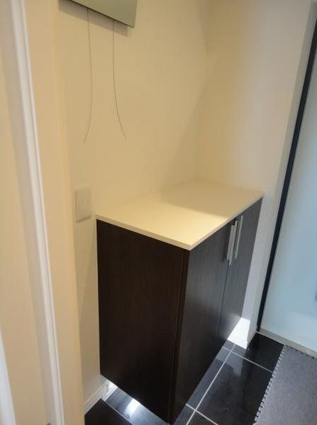 中に入り、すぐ右側にシューズボックスがありました。カウンターに写真を置いたり、絵を飾ったり、ちょっとした棚を置いたり・・・機能的にオシャレにアレンジしましょう☆