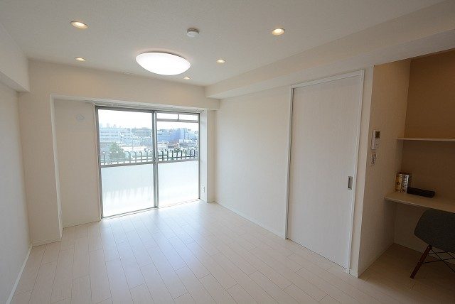大きな窓がある明るいお部屋ですね。やはりシンプルな内装になってますので、お好きなテイストにする事が出来ますよ。