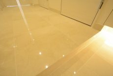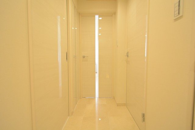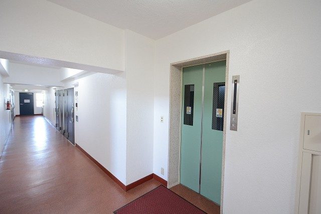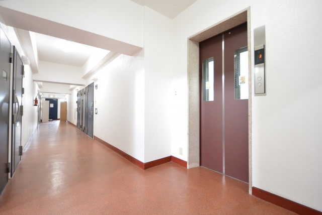 エレベーターを3階で降りて、静かな内廊下を進みます。内廊下は、雨風が激しくて玄関入る前にびしょ濡れなんて心配もありません。