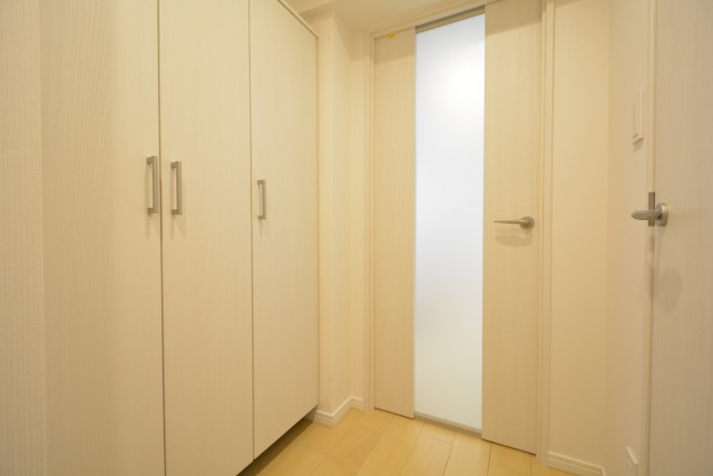 廊下にある収納には生活雑貨を入れて置けそうですね。