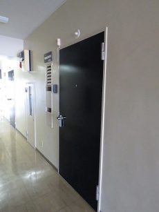 玄関前です。インターホンにはTVモニターがついており、事前に来訪者の顏が確認できるので防犯面も安心です。