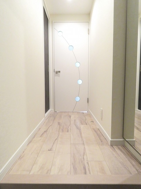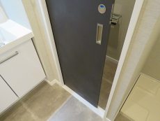 余計な物が一切ないシンプルな玄関。靴などはまめにしまって綺麗にしておきたいですね。玄関ドアにはダブルロック設置で防犯面も安心です。