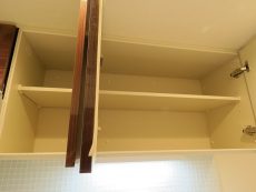 シンク下の収納にくわえ、上には吊戸棚が設置されており、収納力は◎!