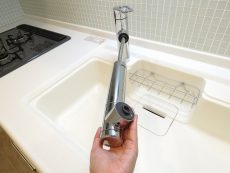 水栓はシャワーにもなるので、お鍋にお水を入れたり、シンクを隅々まで掃除したりと色々便利に使えます。