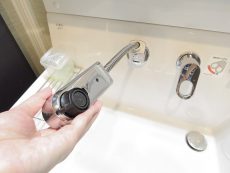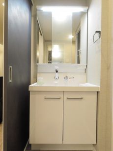 まずは三面鏡付きの洗面台。照明が付いているので鏡を見る時にも影になりません。