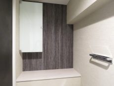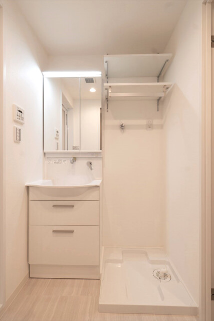 【洗面室:三面鏡付き洗面台・洗濯機スペース】