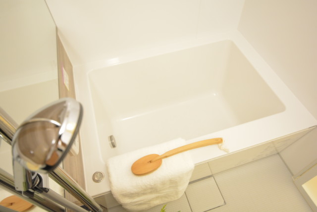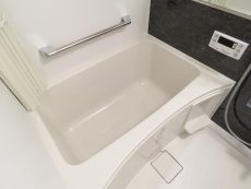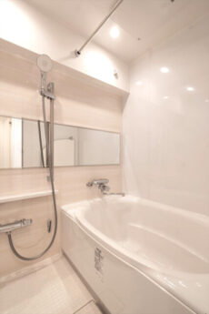 浴室は白を基調にした温かみのある雰囲気。体に合わせたカーブが心地良さそうな浴槽に浸かって、リラックスしたバスタイムを過ごせそうですね♬