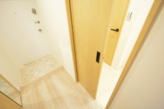 玄関ドア横にはテレビモニターが設置されていて、お部屋の中から訪問者を確認する事が出来ます。応対するかを映像を見てから決められるのはいいですね。うっかり返事をしてしつこいセールスにつかまったりする事も、もうありません。
