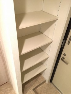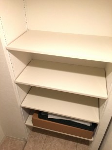 左手のドアは、マルチクロークのドア♪♪可動式の棚が2つも設置されています(o´∀`ノ収納力が多いと生活ペースが多くなって嬉しいです。