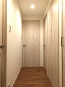 正面のドアは、リビングダイニングキッチンへのドア。廊下は右に伸びています♫