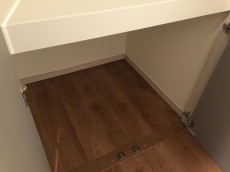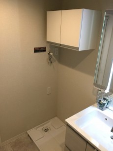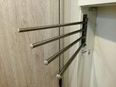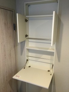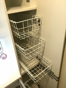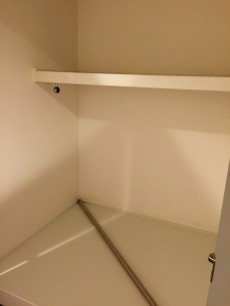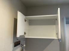 サニタリールームには、お洗濯物干しにも役立ちそうな収納も設置されています。