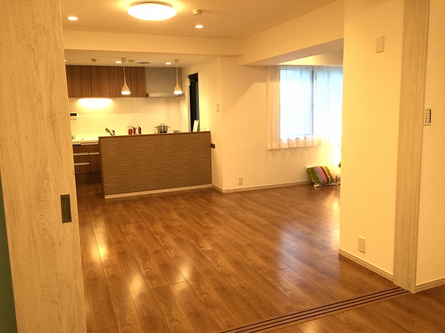 こちらのお部屋はリビングダイニングキッチンとは、スライド式ドアで隔てられているので、開けて使えば一つのお部屋の様に使うこともできます(*´▽`)ドアを開ければ、約23帖の広々リビング!!