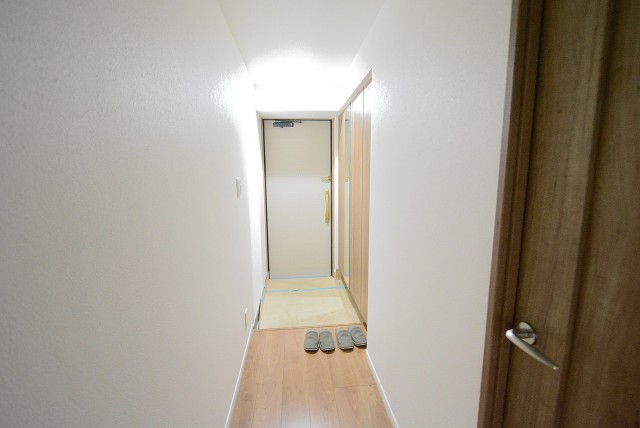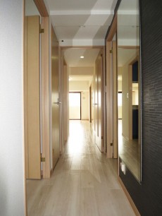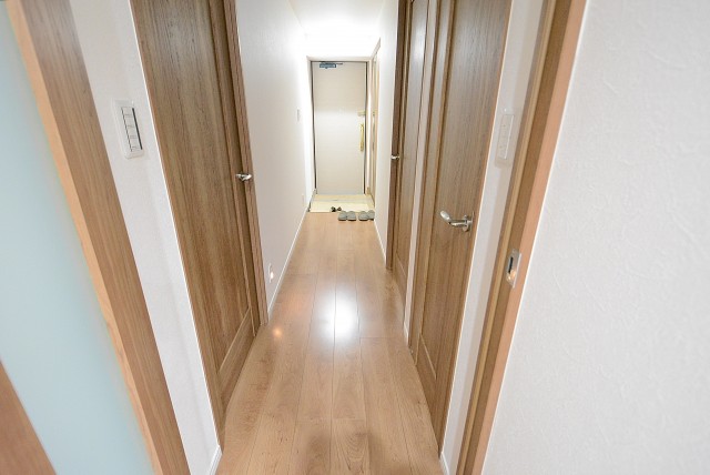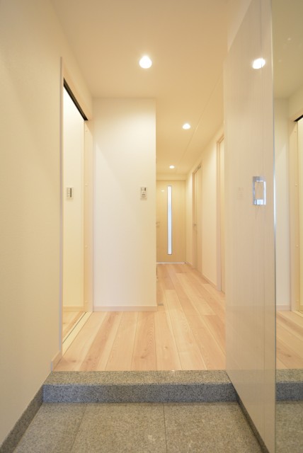 玄関ドアを開けると、上品な雰囲気の廊下が伸びていました。床は木目をそのまま生かしたようなフローリングになっています。
