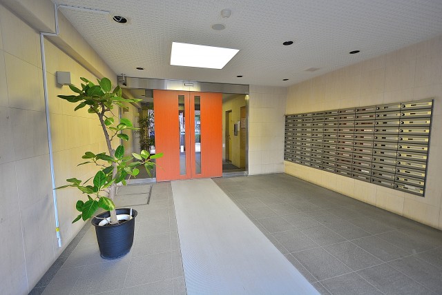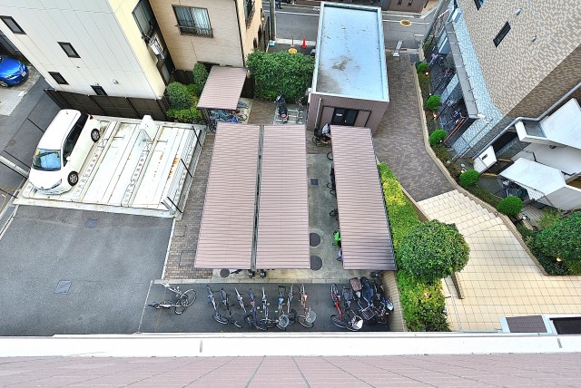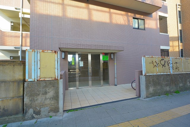 左手はこのマンションの駐車場、真ん中は駐輪場、左は入り口ですね