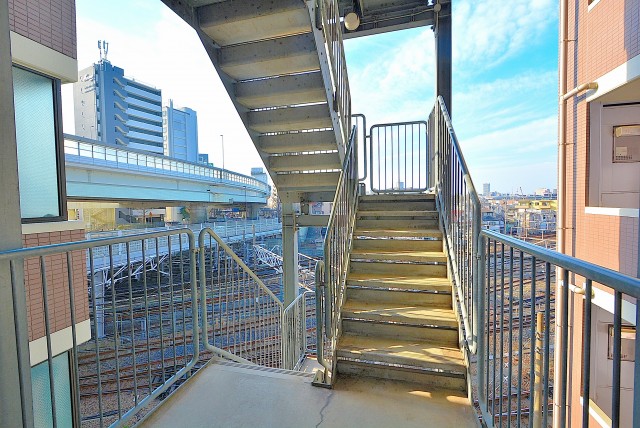 外階段はなんだか線路の上を歩いているみたい (*^艸^)♡