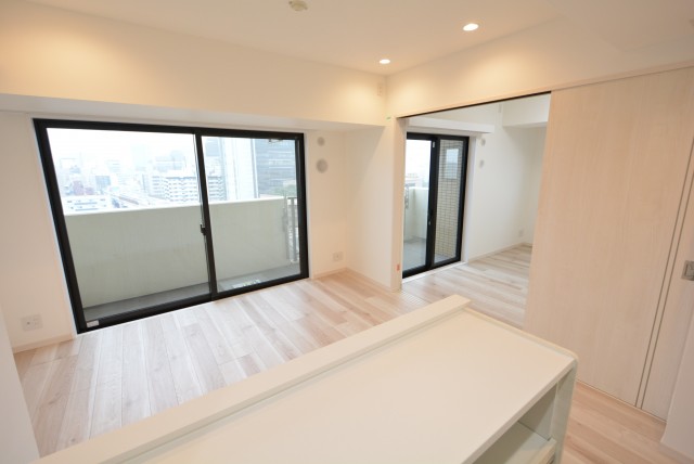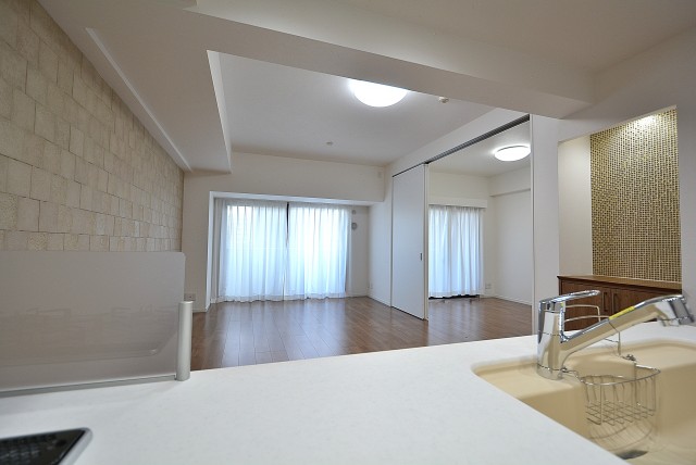 キッチン横には、お隣のお部屋に続く引き違い戸があります。行ってみましょう。