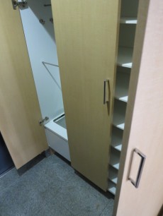 ペーパーのストックや掃除用品などはこちらに収納しておけますね。