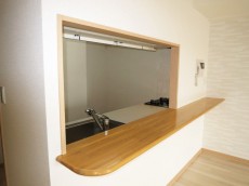 木目パネルの調理台。お部屋の雰囲気によく合っています。