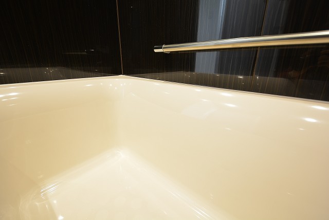 バスルームもファミリーサイズで、一日の疲れをゆったりした気分で洗い流せそう。