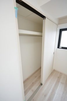 収納は扉が引き戸になったクローゼットです。左右どちらからも開きますよ。