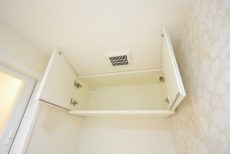 ホルダーがオシャレです。上部には吊戸棚が設置されているので、トイレット