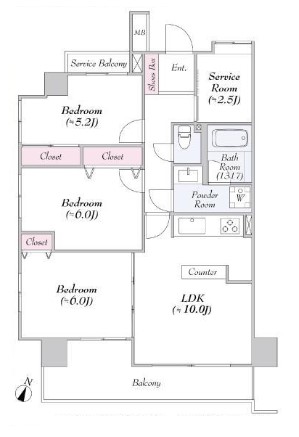 今回のお部屋は最上階の14階、間取りは3LDK+S、専有面積は65.30㎡となります。