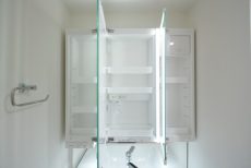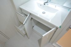収納はミラーキャビネットと洗面台の下になります。細かい物から大きな物まで上手く収まりそうですね。