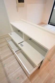 シューズボックスも大容量で、ご家族の靴はもちろん、ちょっとしたワンマイルグッズ