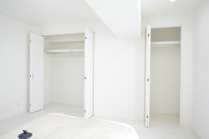 クローゼットは大小ふたつ。どちらもフルオープンになる使いやすいタイプです。奥行きもあってキャリーバッグなど大きな物も入りますし、衣装ケースなどを置けば収納力をアップさせることも可能。