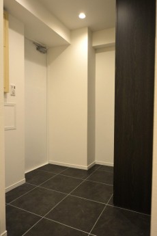 ブラックのタイル貼りでシックな雰囲気の玄関ホール。