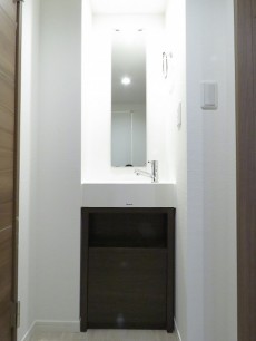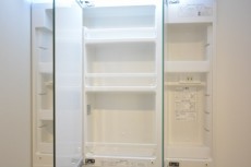 洗面化粧台は鏡の裏が一面収納になっており、水廻りのゴチャゴチャとしたアイテムもスッキリお仕舞いただけます。
