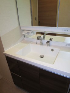 さすが4LDK、洗面化粧台もワイドなゆとりがあります。継ぎ目のないなめらかな