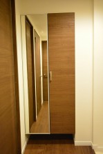 扉の半分には鏡が設置されていますので、お出かけ前の身だしなみチェックもここで済ませられて便利。