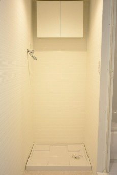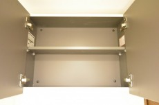 洗濯機置場の上には収納棚もついているので、手の届くところに洗剤を仕舞っておけます。便利ですね。