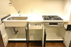 収納場所も上下にしっかりあります。シンク下には大きなお鍋やザルもすっぽりしまえそうです。