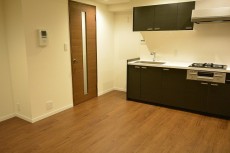 入口を入るとすぐ左側にキッチンスペース。向かって左側のスペースに冷蔵庫が置けるようになっています。