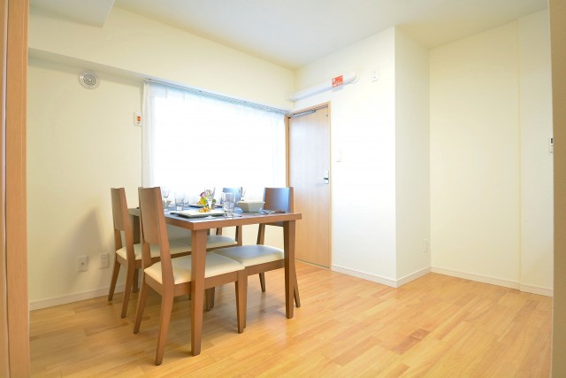 約6.7畳のダイニングキッチン。家具付きで販売しているのでお部屋に設置されている