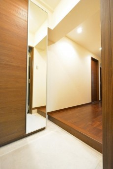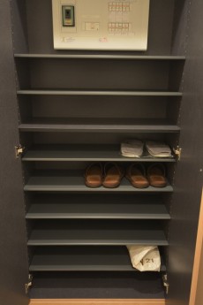 玄関を入ると右手に扉の半分に鏡のついたシューズBOXがつくられています。