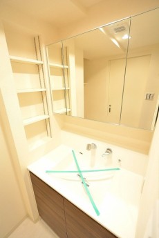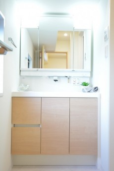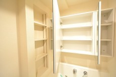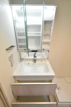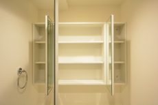 洗面化粧台は3面鏡の裏が一面収納になっています。