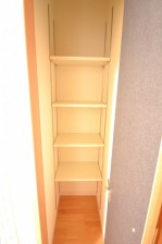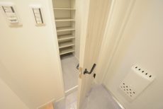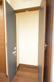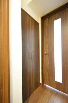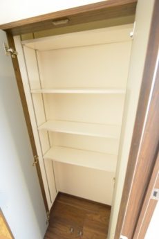 廊下の突き当たり、リビングのドアの隣に収納スペースもあります。
