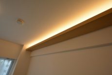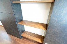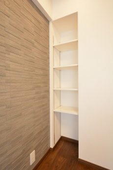 壁際には造作棚が設置されていて、オブジェのディスプレイやテレビ台としてもお使いになれそうです。