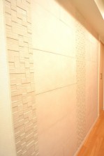 廊下の壁面にはエコカラットがあしらわれています。ステキですね。