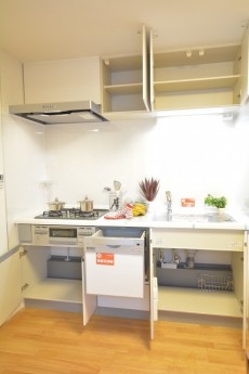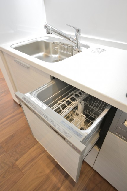 設備は浄水器一体型水栓、2口ガスコンロ、食洗機も付いています。