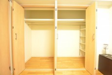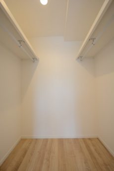 ハンガーポールが2本、横には高さが変えられる棚もつくられているゴージャスさ。
