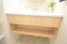 ちなみに、洗面ボウル下の引き出しは、閉まる直前でショックを吸収し、和らげるソフトクローズ機能付きの引き出しとなっております。