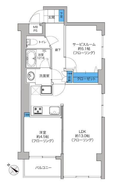 13.0帖のLDKは南西向き角部屋で明るいお部屋です。