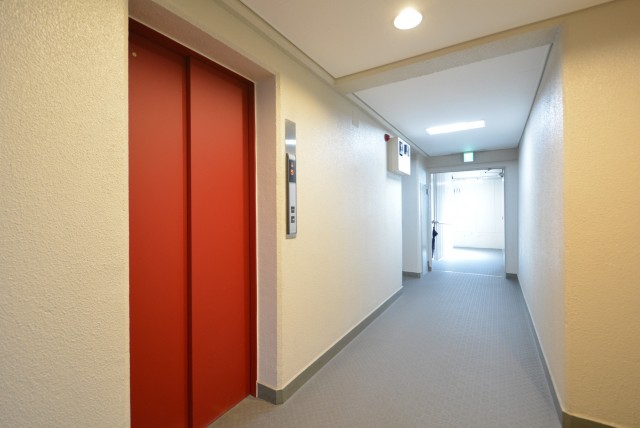 エレベーターホールも綺麗に維持されています。エレベーターの扉が明るくて良いアクセントになっています。